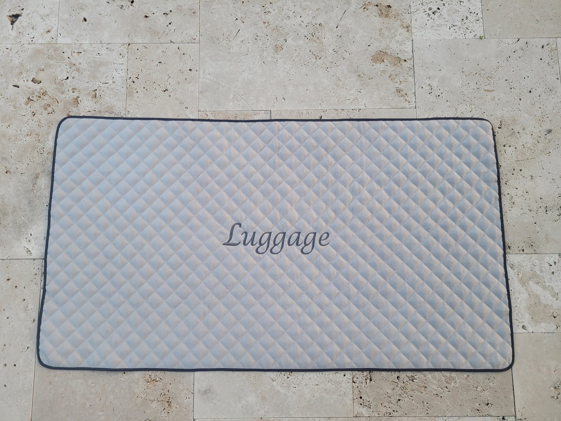 This is our basic version of our premium luggage mats. Same construction and quality but only difference is that the edge is finished with a contrasting bound edge.